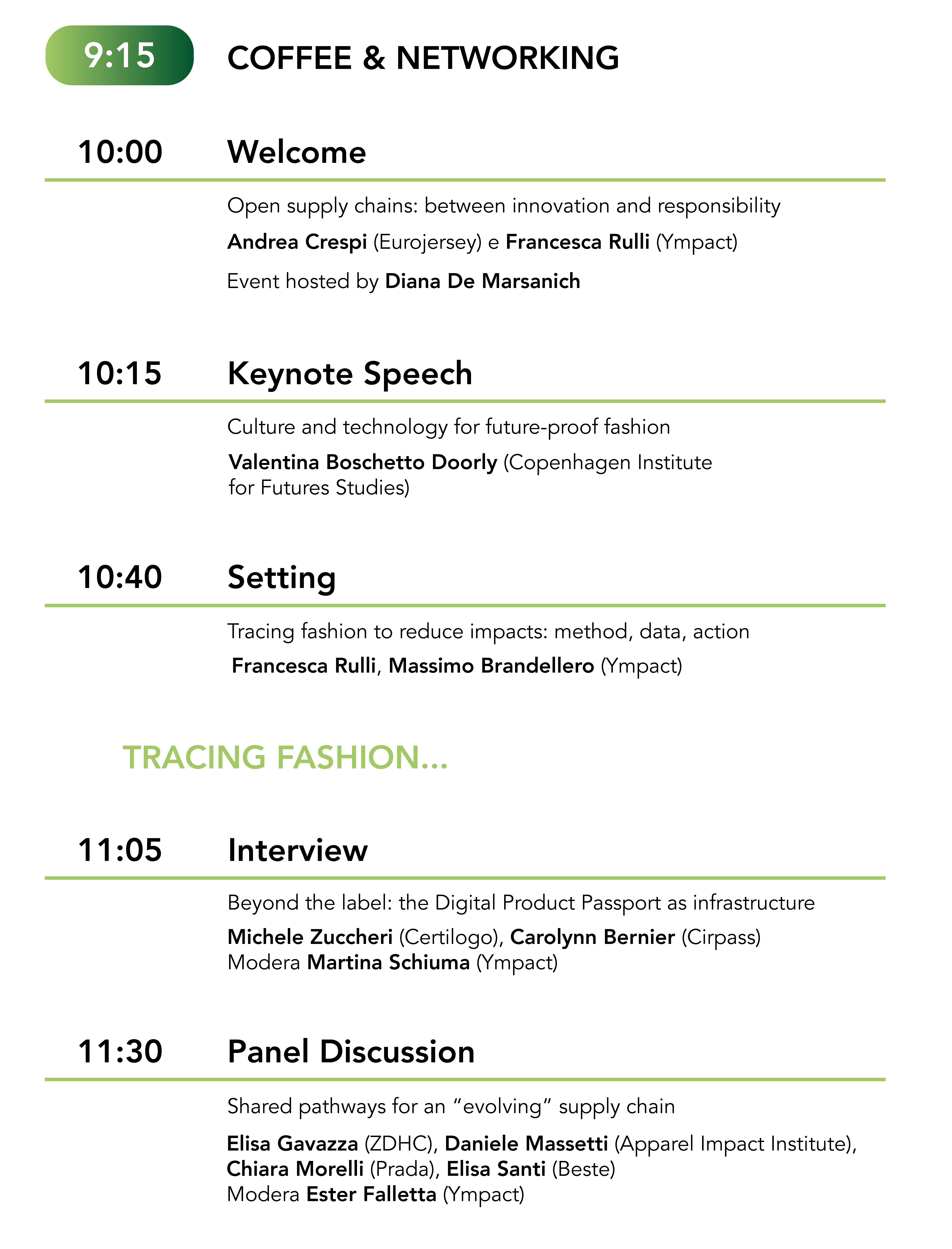 If you have not received an invitation, it does not necessarily mean you are not in our distribution database, especially if you work for a brand or company in the fashion supply chain – the core audience of the Event. Please check your inbox carefully, including the Spam folder. If you find nothing, you may write to events@ympact.xyz, specifying your full name and company. Availability is limited and participation cannot be guaranteed, but we will review your request and provide feedback as soon as possible.
